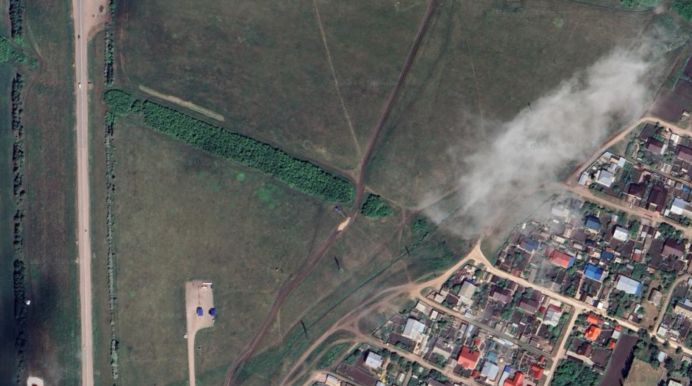 Согласно спутниковым снимкам сервиса Google Earth, строительные работы на территории не проводились: участок находится в районе лесопосадки, а строения с синими крышами существовали ещё до выделения земли.