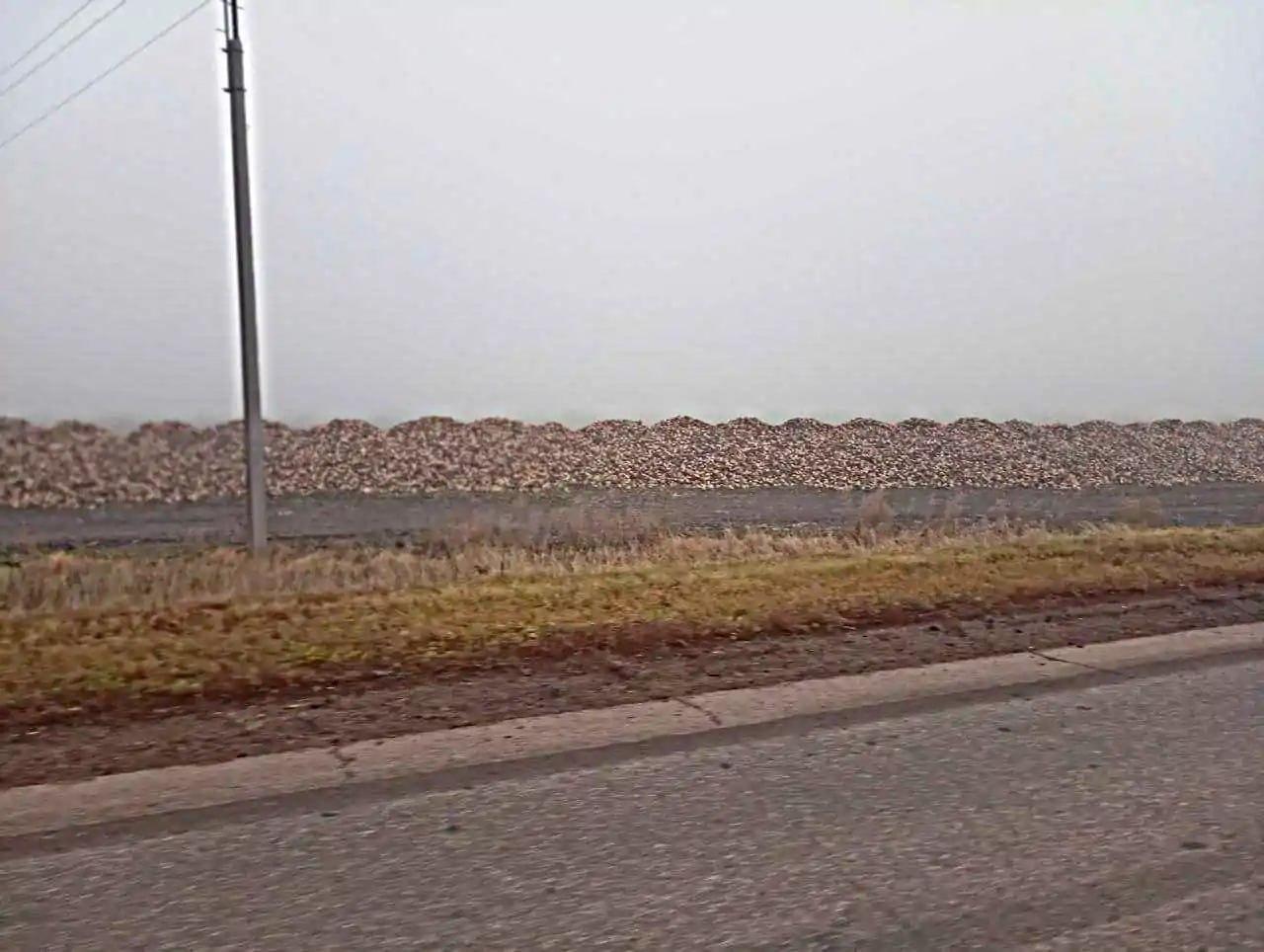 В настоящее время техника — тракторы и погрузчики — расчищает снег на полях и отправляет урожай в Чишмы, предположительно на сахарный завод.