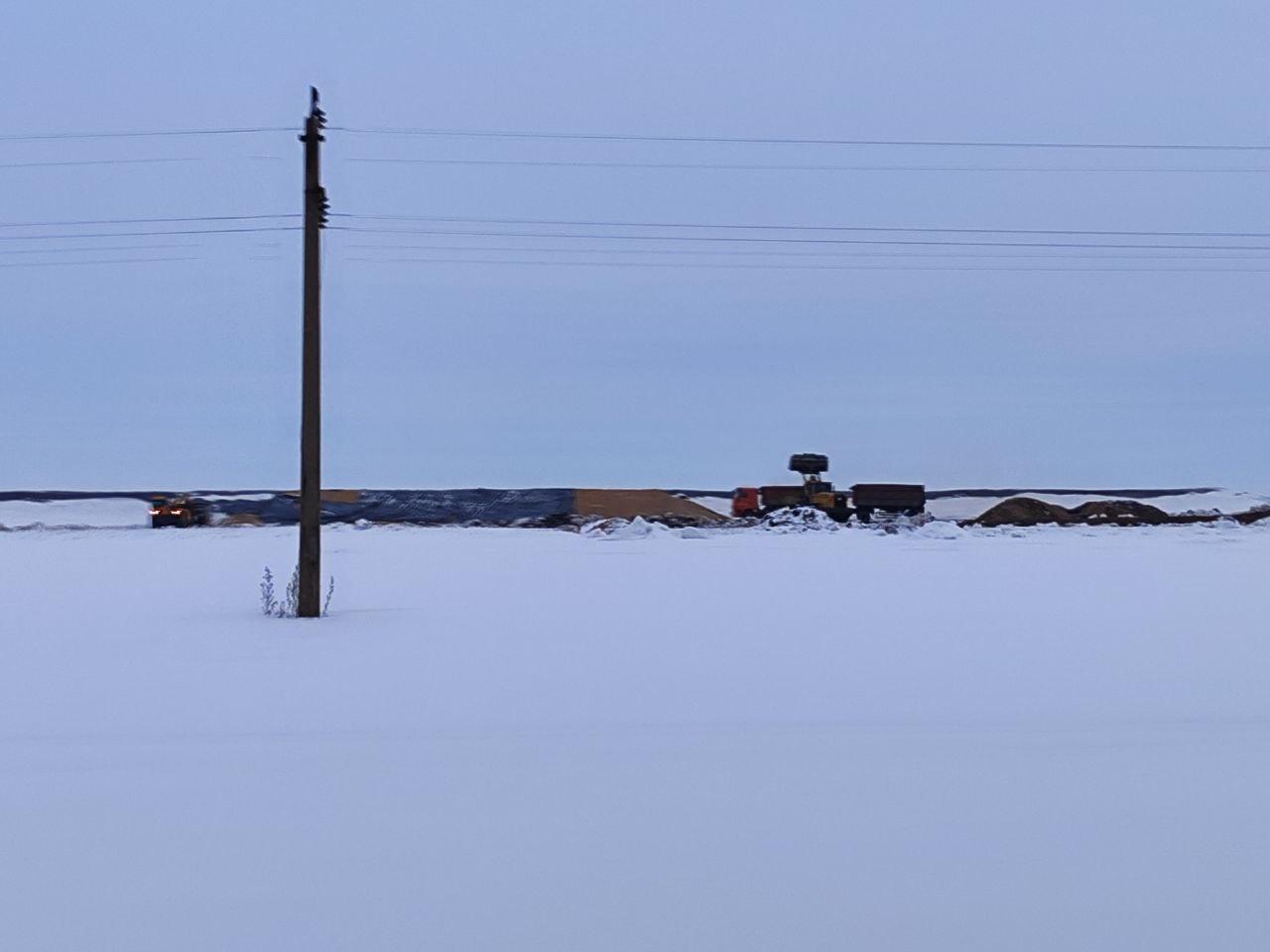 Огромные курганы зерна, укрытые плёнкой, находились в поле до начала февраля. В этот день к ним для вывоза подъехали грузовики.