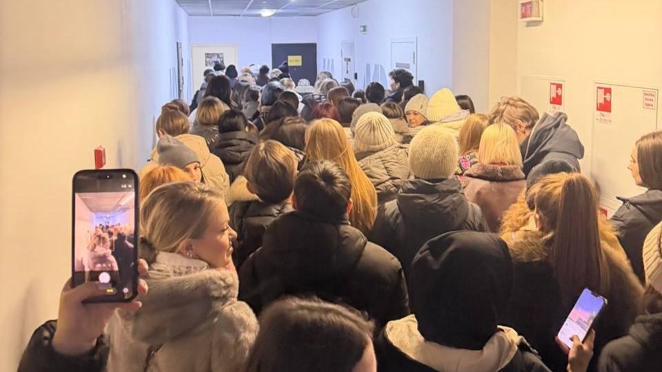 Магазин открылся всего около часа назад, но уже привлёк множество желающих сделать последние покупки. Очередь растянулась по всему коридору, а работать точка будет до 21:00.