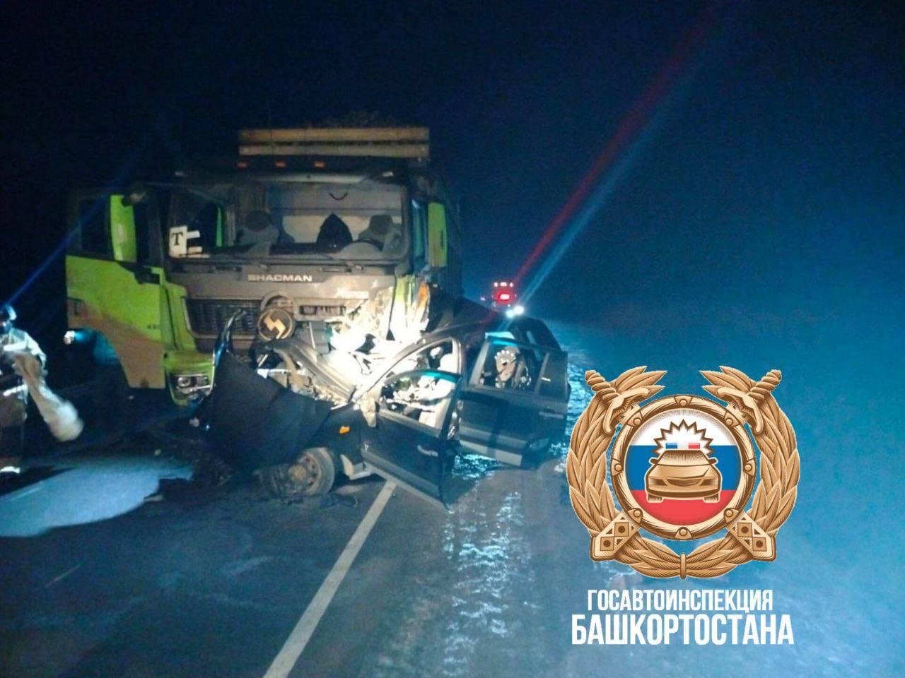 Смертельное дорожно-транспортное происшествие случилось в Башкирии 6 декабря около 16:35. На 59-м километре автодороги Буздяк — Давлеканово автомобиль Ford Fusion из-за гололёда вынесло на встречную полосу, где он боковой частью столкнулся с грузовиком марки Shacman.