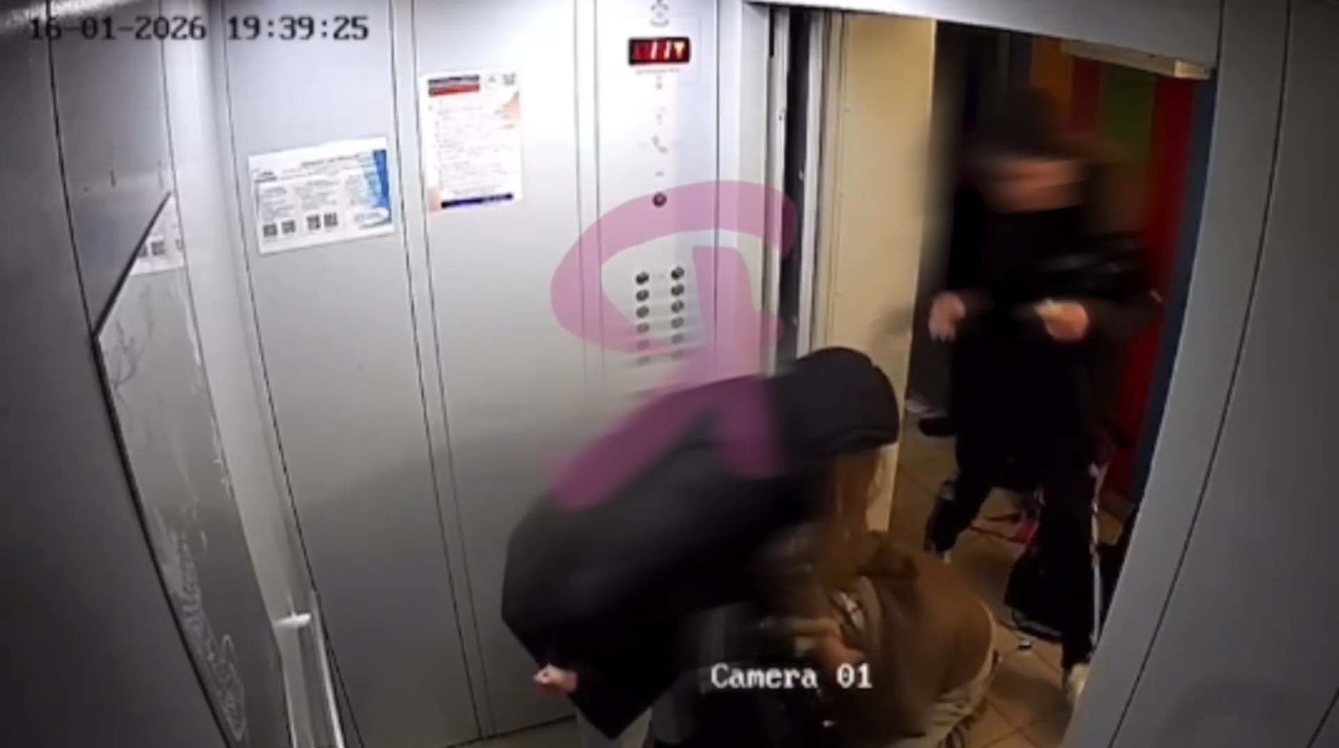 На кадрах видно, как мужчина и женщина попеременно избивают молодую женщину внутри лифта. В конце записи у одного из агрессоров заметна бутылка со спиртным. Свидетели утверждают, что в ходе драки было повреждено лифтовое оборудование.