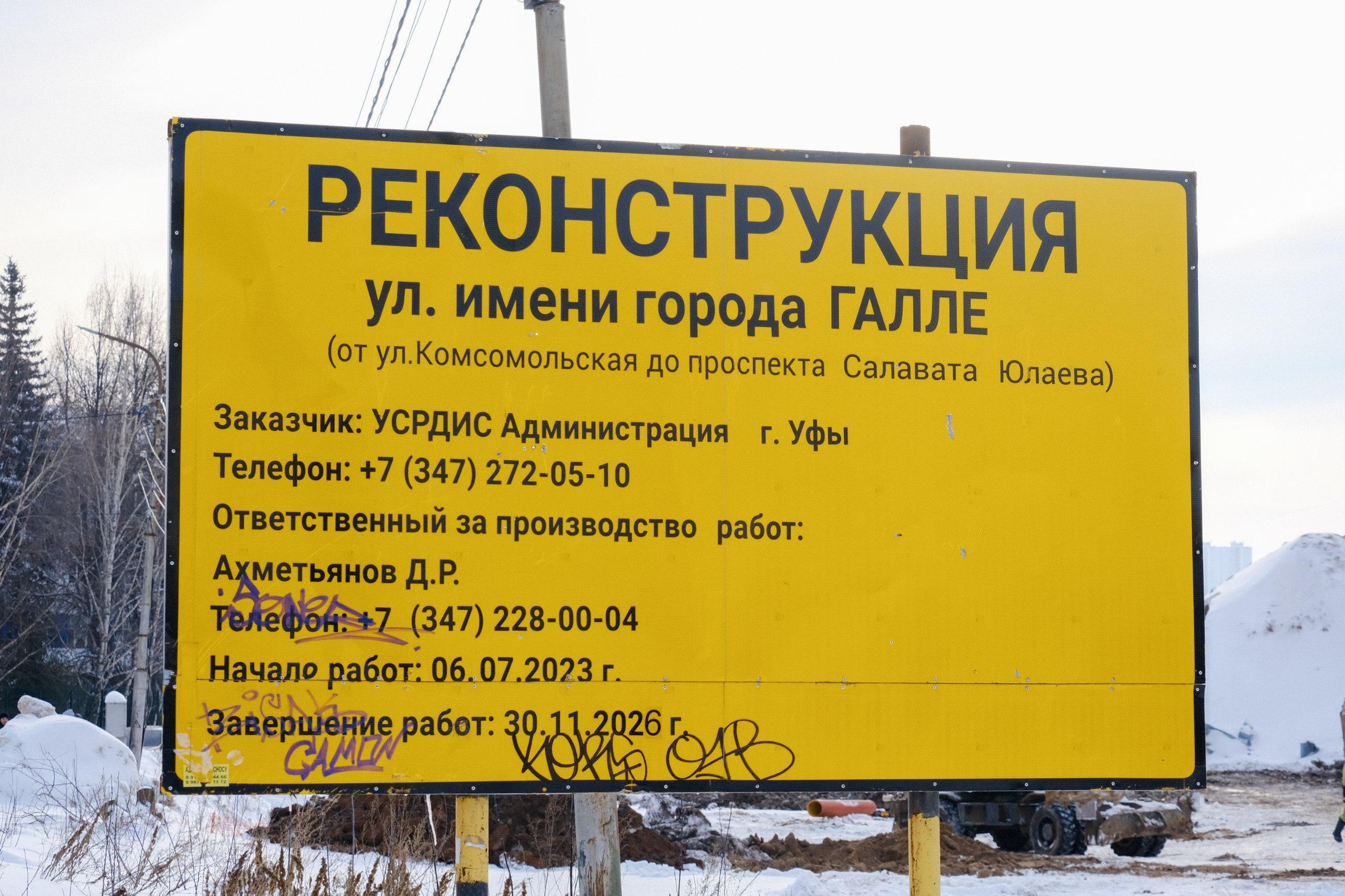 Мэр Уфы Ратмир Мавлиев отчитался, что продолжение Восточного выезда — улицу Галле от проспекта Салавата Юлаева до Комсомольской — планируют достроить в 2026 году. На информационном стенде у места работ указан крайний срок — 30 ноября.